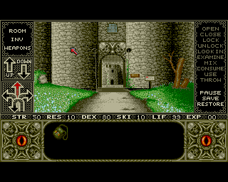 Χειρισμός:Ένα πολύ σημαντικό κομμάτι που αξίζει να σταθούμε είναι τα στοιχεία που βάζουν το Elvira στην κατηγορία των role playing games που είναι ο χειρισμός και τα στατιστικά των ικανοτήτων σας,χονδρικά το επίπεδο του level σας το οποίο ανεβαίνει σε όλη την διάρκεια του παιχνιδιού.Στον χειρισμό τα πράγματα είναι πολύ εύκολα.Στα αριστερά από την κεντρική οθόνη δράσης έχουμε σε μορφή λίστας μια σειρά από εντολές όπως στα περισσότερα adventures εκείνης της εποχής.Από επάνω έχουμε τις εντολές Open,Close,Lock,Unlock,Look in,examine,Mix (για την μίξη των βοτάνων),Consume,Throw.Εύκολες εντολές που δεν χρειάζεται να σταθούμε και στην επεξήγηση.Απλά με το ποντίκι κάνετε κλικ στην κάθε εντολή που θέλατε να χρησιμοποιήσετε και μετά κλικ στον χώρο της δράσης που θέλετε να γίνει η ενέργεια.Πολύ εύκολος χειρισμός και σε καμία περίπτωση δεν θα αντιμετωπίσετε κάποιο πρόβλημα. Πέρα του χειρισμού και εδώ αξίζει να σταθούμε περισσότερο,είναι πως το παιχνίδι μας δίνει κάποια στατιστικά που αφορούν εμάς και την πρόοδο μας στο παιχνίδι.Αυτα τα στοιχεία ουσιαστικά είναι που δίνουν και την ονομασία role playng στο παιχνίδι.Από κάτω και αριστερά λοιπόν έχουμε το Strength (Δύναμη) το Restoration (αποκατάσταση ) το Dexterity (επιδεξιότητα) το Skil level (Επίπεδο) το γνωστό Life (Η ενέργειά σας) και τέλος το Experience δηλαδή η εμπειρία σας.Όσο παίζετε το παιχνίδι,και όσο περισσότερο μάχεστε με τους κακούς,τόσο και ποιο δυνατός γίνεστε ανεβάζοντας σιγά σιγά τις τιμές σε όλα τα παραπάνω στοιχεία.Έτσι λοιπόν για να μπορέσετε να επιβιώσετε είναι να ξεχωρίσετε τις μάχες με τους κακούς, σύμφωνα με το επίπεδο το δικό σας και αυτών..Για παράδειγμα οι φρουροί που φορούν κόκκινη στολή είναι και αυτοί που μπορούν να σκοτωθούν εύκολα.Αντίθετα οι φρουροί με μπλε στολή απαιτούν να έχετε ανεβάσει τις τιμές σε όλα τα παραπάνω που προαναφέραμε.Η αν π.χ προσπαθήσετε να σκοτώσετε τον τέρας στις στοές χωρίς να έχετε οπλιστεί με τα κατάλληλα όπλα και την κατάλληλη δύναμη και εμπειρία, απλά θα χάσετε αμέσως πριν ακόμη προλάβετε να κάνετε κλικ στο ποντίκι σας..Το Elvira ουσιαστικά ήταν το πρώτο adventure που συνδύαζε τα παραπάνω στοιχεία με απόλυτη αρμονία ανοίγοντας έτσι τον δρόμο σε μια νέα κλάση παιχνιδιών.