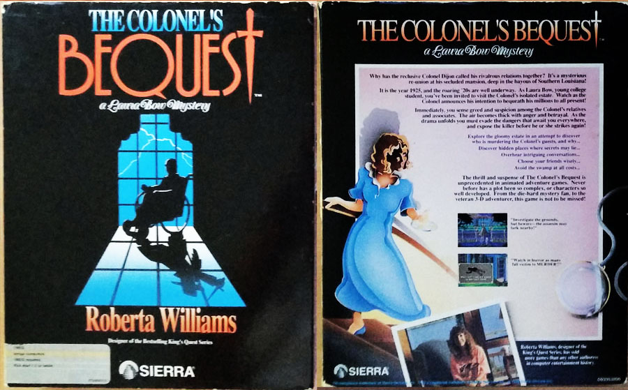 Πέρασαν πολλά χρόνια από τότε που ο τρόμος,το μυστήριο,αλλά και οι αστυνομικές υποθέσεις μπήκαν για τα καλά στα adventure games,και συνεπώς στις ζωές των φανατικών χρηστών αυτού του είδους. Μια από τις πρώτες εταιρίες που χρησιμοποίησε αυτά τα στοιχεία στα παιχνίδια της ήταν η θρυλική και αξιαγάπητη σε όλους τους παλαιούς φίλους των adventure games Sierra.Προς τα τέλη του 80 ήδη αριθμούσε αμέτρητες επιτυχίες όπως τις αξέχαστες περιπέτειες του ερωτιάρη Larry,τις περιπέτειες του Sonny Bonds ενός 15 ετή βετεράνου της αστυνομίας στην σειρά Police quest,αλλά και τις αλλόκοτες εμπειρίες που ζήσαμε παίζοντας την διαστημική σειρά Space Quest.Φυσικά η sierra δεν έμεινε εκεί αλλά πολλύ γρήγορα είδαμε και άλλα αριστουργήματα να παρουσιάζονται όπως οι αξέχαστες σειρές Kings Quest και Manhunter New York και Manhunter 2 San Francisco.Με αυτές τις χρυσές σειρές λοιπόν η sierra σφράγισε το όνομα της με χρυσά γράμματα και μπήκε δικαιολογημένα στο πάνθεων των καλύτυτερων δημιουργών παιχνιδιών με την Roberta Williams να βρίσκεται πίσω από τους περισσότερους επιτυχημένους της τίτλους.Εμείς θα σταθούμε στην χρονιά 1989 όταν η Roberta Williams αποφάσισε και πάλι να μεγαλουργήσει με κάτι όμως διαφορετικό.Θέλησε να συνδυάσει όλα τα στοιχεία όλων των παιχνιδιών της σε ένα παιχνίδι μυστηρίου,και θα λέγαμε πως το κατάφερε με τον τίτλο Colonels Bequest,ένα adventure στα χνάρια των ταινιών της Αγκάθα Κρίστι με άφθονη πλοκή,μυστήριο,δολοφονίες,και παράνομους έρωτες.Οι λάτρεις του μυστηρίου και των αστυνομικών θρίλερ το λάτρεψαν αμέσως,και τα περιοδικά της εποχής εκείνης υποκλίθηκαν στο μεγαλείο και την ευρηματικότητα της Roberta.Το Colonel's Bequest ερχόταν σε μια μοναδική συσκευασία κάτι που άλλωστε ήταν συνηθισμένο στα adventures της εταιρίας..Από το εξώφυλλο κιόλας καταλάβαινες ότι επρόκειτο για κάτι πραγματικά ποιοτικό....