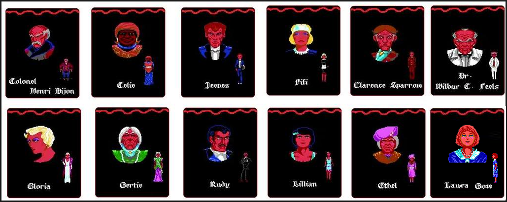Οι χαρακτήρες του colonels bequest.Όλοι κρύβουν ένα μυστικό και φυσικά όλοι τους είναι ύποπτοι.