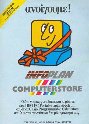 Το Infoplan ήταν ένα πολύ προσεγμένο κατάστημα στο οποίο ο πελάτης -επισκέπτης μπορούσε να βρει τα πάντα με όλη την σημασία της λέξεως.Μπορούσε να βρει μηχανήματα αιχμής για την εποχή εκείνη όπως Amstrad,Commodore,Spectrum,Oric,New Brain,Jupiter ace,Amiga,Atari,αλλά και συμβατούς PC AT και XT.Φυσικά το κατάστημα είχε μεγάλη γκάμα προγραμμάτων και παιχνιδιών για όλους τους υπολογιστές που προμήθευε.Πραγματικά ένα στολίδι το κατάστημα αυτό για την Αθήνα που δυστυχώς και αυτό έκλεισε κάπου στα μέσα του 90.