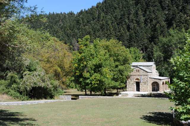 Μία από τις πρώτες εκκλησίες που συναντάμε είναι και η Ζωοδόχος Πηγή, η οποία βρίσκετε άμεσα σε έλατα και καρυδιές σε ένα όμορφο και ειδυλλιακό τοπίο. Μπορείτε να καθίσετε και να ξεκουραστείτε πίνοντας δροσερό νεράκι από την πηγή που υπάρχει στη άκρη του δρόμου!!!