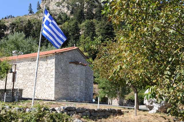 Στη κεντρική πλατεία θα βρείτε και εδώ βρύση με φρέσκο δροσερό νερό. Δίπλα ακριβώς από την βρύση ξεκινά ένα μονοπάτι που όπως λέει η ταμπέλα είναι ένα μονοπάτι που οδηγεί στα λημέρια των Κολοκοτρωναίων.