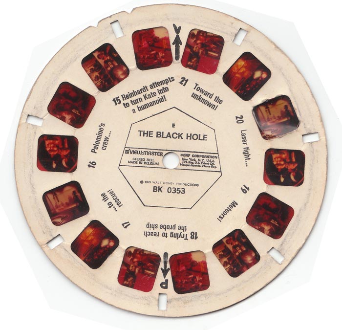 Κλείνω τα μάτια και ταξιδεύω..Αναρωτιέμαι πόσο πίσω να πάω.Νομίζω πως θα σταματήσω στο 1982 και να θυμηθώ λίγο μαζί σας μια αγαπημένη μου ταινία.Δεν είναι κάποιο review ούτε κάποια παρουσίαση..αλλά...είναι μια κατάθεση παιδικών αναμνήσεων που σίγουρα έχουμε όλοι μας..Θα θυμηθούμε λίγο ένα παλιό δίσκο για view master από μια αγαπημένη μου ταινία επιστημονικής φαντασίας παραγωγής του 1979 από την Walt Disney.Θα θυμηθούμε το The black hole.
