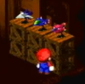 προσφατα τελειωσα το mario rpg και κατα τη διαρκεια του παρατηρησα οτι οι προγραμματιστες με χιουμοριστικη διαθεση "εκρυψαν" ηρωες απο αλλα παιχνιδια σε αυτο . ιδου λοιπον τα ευρυματα μου