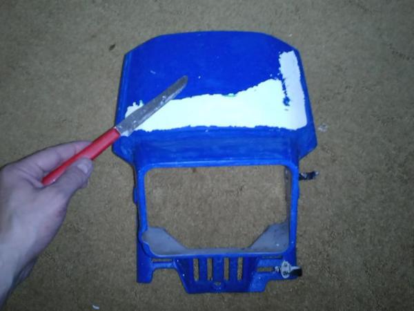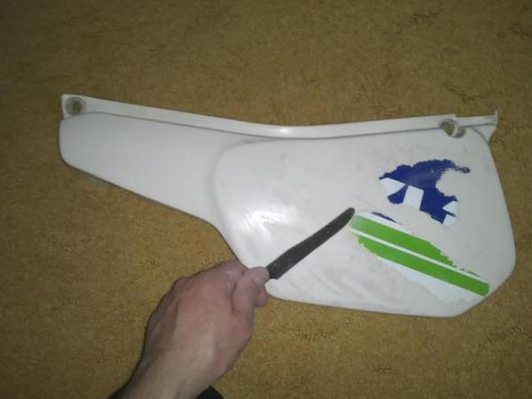 Με το μηχανάκι όλα καλά για την ώρα την παρκάρισα στην πλωτή και ανέβηκα να συνεχίσω την εργασία μου.Ξεκίνησα με τα πλαϊνά καπάκια βγάζοντας τα από επάνω.Η πρώτη μου σκέψη ήταν να τα βάψω αλλά δυστυχώς αυτό δεν ήταν δυνατό διότι τα πλαστικά αυτά είχαν ελαστικότητα οπότε το χρώμα δεν θα μπορούσε να κρατήσει επάνω..Απόδειξη άλλωστε και το παλιό βάψιμο που τα είχε κάνει ο Θοδωρής πραγματικά δεν έκαναν για αυτή την δουλειά..Η μόνη λύση λοιπόν ήταν η να αγοράσω καινούργια που το κόστος ήταν πολύ υψηλό, η να φτιάξω τα παλιά..Αποφάσισα το δεύτερο τρόπο αγοράζοντας πρώτα τα αυτοκόλλητα.Ξεκίνησα με το αριστερό καπάκι γεμίζοντας ένα σακούλι με υπομονή αφού ήξερα πως το τρίωρο δεν το γλίτωνα για το κάθε ένα.Τα κομμάτια της παλιάς μπογιάς έβγαιναν με δυσκολία και έμοιαζαν σαν το ξεφλούδισμα κάποιου μήλου.Άραγε θα καταφέρω να τα ασπρίσω αλλιώς δεν θα είχε καμία σημασία η όλη δουλειά!ξεκίνησα με ένα μαχαίρι σπάζοντας και ξεφλουδίζοντας τα παλιά κομμάτια με το χρώμα.