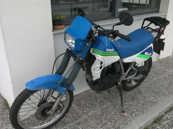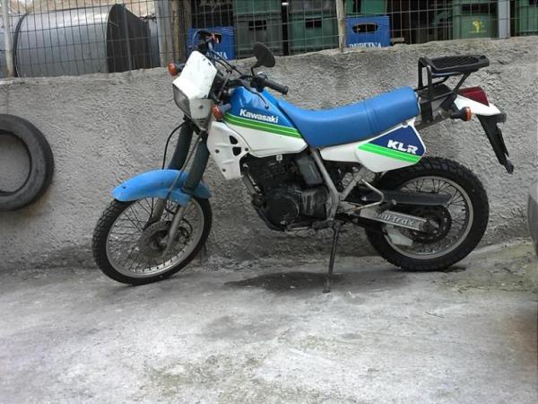 Εδώ και λίγα χρόνια κυκλοφορώ στους δρόμους της πόλης με ένα Yammaha mate 50cc παπάκι του 1979 - 82 που μου είχε χαρίσει ένα φίλος μου για να κάνω την δουλειά μου..Πραγματικά με έβγαλε ασπροπρόσωπο αφού εδώ και περίπου 3 χρόνια δεν με άφησε ποτέ και πάντα με πήγαινε όπου ήθελα.Δυστυχώς εδώ και λίγους μήνες το μηχανάκι ήθελε οπωσδήποτε συντήρηση και φυσικά χρήματα..Καινούργια λάστιχα νέες ποδιές φτιάξιμο το τιμόνι που έπαιζε,από την αρχή νέα φώτα και καλώδια για την σύνδεση (Φώτα δεν είχα ποτέ)..Όπως καταλαβαίνετε όσο και αν ήθελα να το φτιάξω ήταν αδύνατο να δώσω τόσα χρήματα για την επισκευή του..Γυρνούσε λοιπόν μέσα στο μυαλό μου η αγορά ενός νέου παπιού η μεταχειρισμένο η καινούργιο.Τα χρήματα ήταν πολλά για την τσέπη μου αφού τα έξοδα δεν με άφηναν να λυτρωθώ.Για καλή μου τύχη όμως η προσευχές μου εισακούστηκαν και ένα φίλος από τα παλιά μου έδωσε ένα υπερήφανο Kawasaki KLR 250 μοντέλο 1995 μιας και είχε πάρει καινούργιο και αυτό το είχε παρατημένο με προβλήματα 5 ολόκληρα χρόνια..Δεν χρειάστηκε να το πολυσκευτώ..Δέχτηκα την δωρεά του και τον ευχαρίστησα..Έμενε τώρα να δω τι θα χρειαστεί.Για την ιστορία και μόνο να πούμε πως το KLR είχε μια πολύ μεγάλη και λαμπρή πορεία.Θα λέγαμε πως ήταν το best seller μηχανάκι της kawasaki αφού παραγόταν από το 1985 παρακαλώ μέχρι και το 2007.Εμφανισιακά οι αλλαγές που είχε κάνει η kawasaki Στα μοντέλα της ήταν σχεδόν ανύπαρκτες και μόνο το βάψιμο μαρτυρούσε κάποια νέα έκδοση.